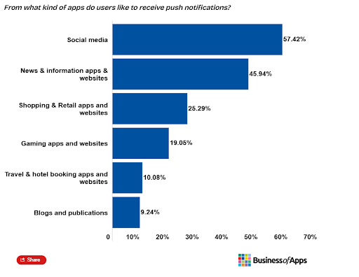 According to Worldmetrics analysis in 2025, customers prefer opening more apps when the push notifications are related to exclusive offers.